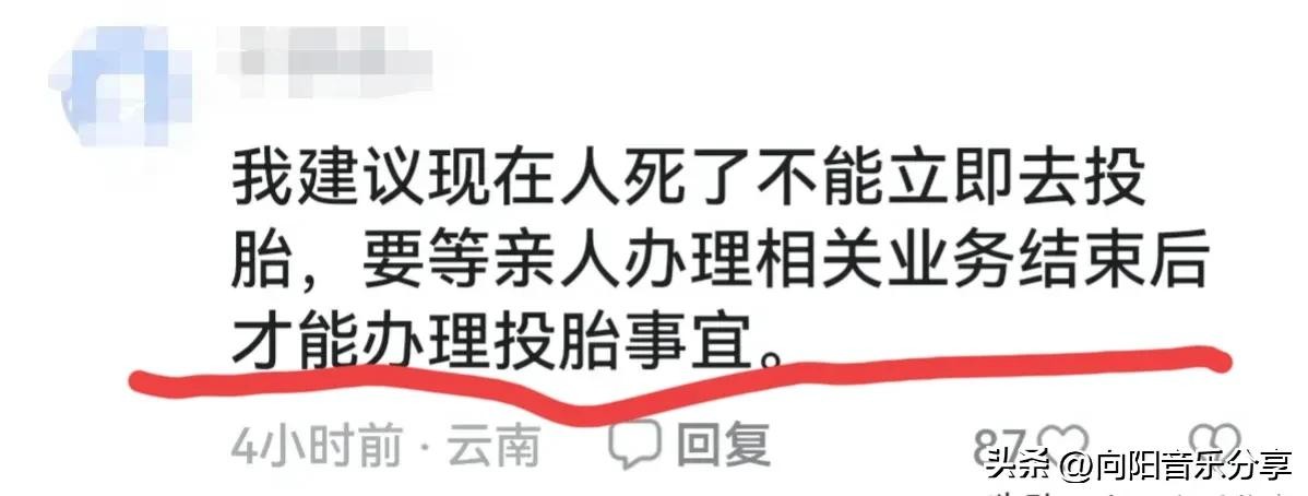 我建议现在人死了不能立即去投胎,要等亲人办理相关业务结束后才能办理投胎事宜。