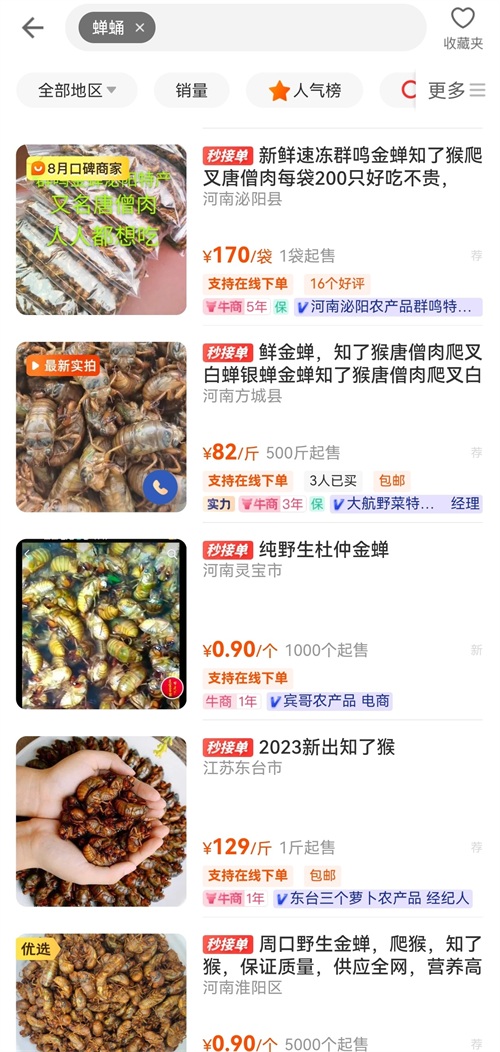 另外一个对蝉蜕影响较大的就是蝉蛹。蝉蛹由于蛋白质含量高,也被开发成一种美味食材。夏天,是各地风味餐馆里的一道著名小吃。在一亩田平台,蝉蛹的价格每斤在80-100元之间。相对于收集蝉蜕,收集蚕蛹更容易获得收益也更大。蝉蛹则要在知了还没有褪去蝉蛹之前将其捕捉,也因此,更多的蝉蛹丧失了蜕变成知了、留下蝉蜕的机会,会被流通至餐饮消费市场。