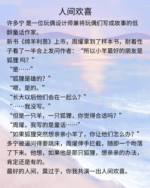 《人间欢喜》讲述的是玩具设计师许多宁和风投公司老总周耀的爱情故事,两人属于青梅竹马一起长大的,也顺理成章地结婚,但因为一些意外,两人离婚。