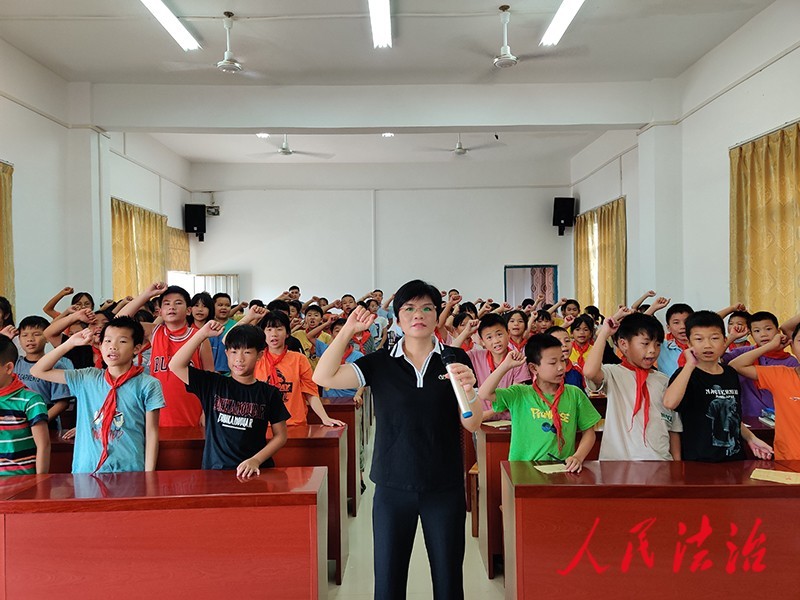 宁康乡党委书记黄献梅到宁康乡中心校上禁毒教育课,带领学生进行禁毒宣誓