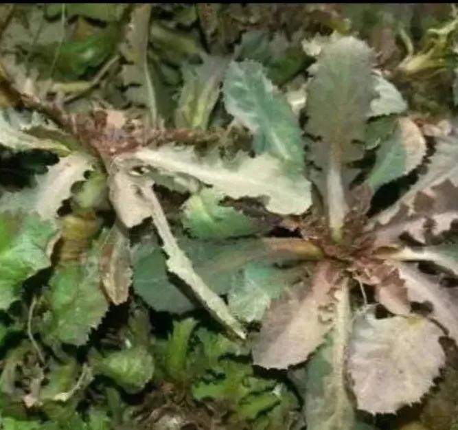 几场降温,苦碟子已失去原本的嫩绿色,叶片尖端呈紫红色,就像冻僵的婴孩儿脸庞,煞是可爱!