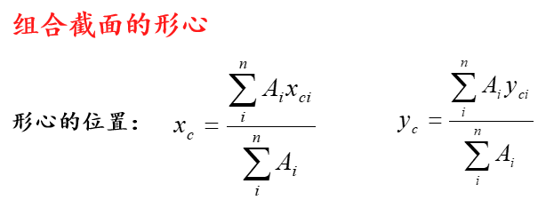 如果截面的图形是由几个简单图形(如矩形、圆形等)组成的,这种截面称为组合截面。组合截面对某一轴的静矩应等于其各组成部分对该轴静矩的代数和。