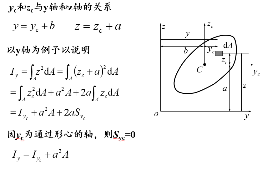 对于平面图形,建立坐标系O-y-z和基于形心C的坐标系C-yc-zc。
