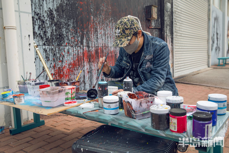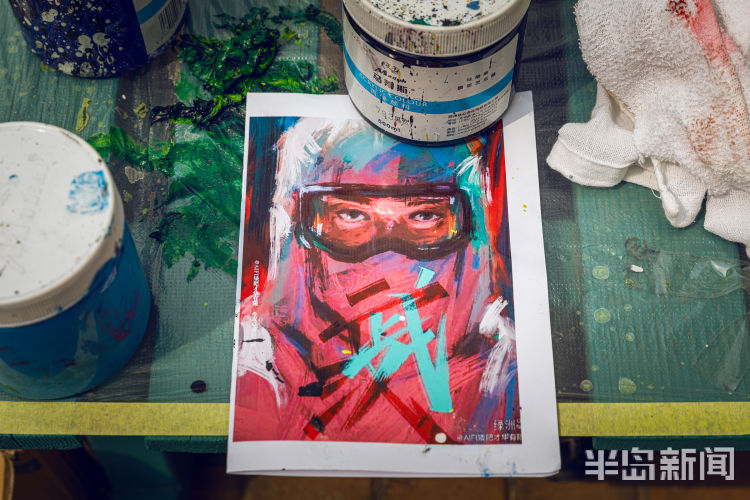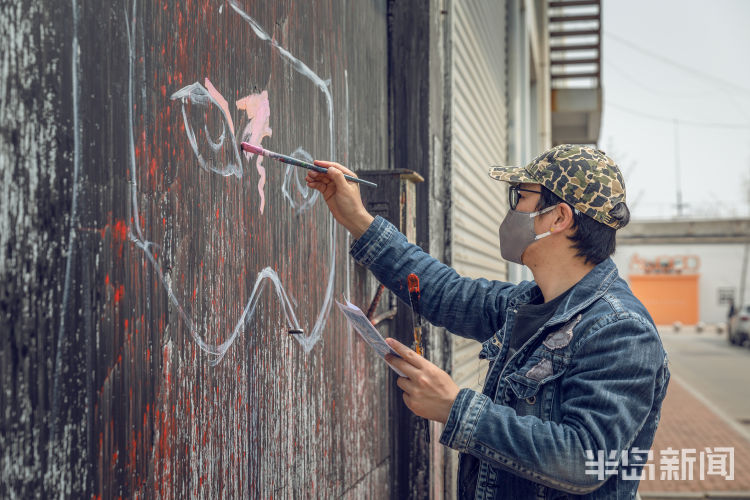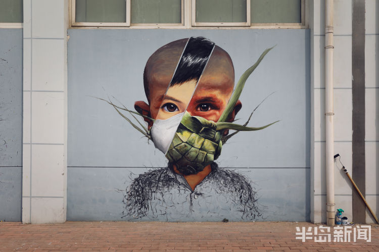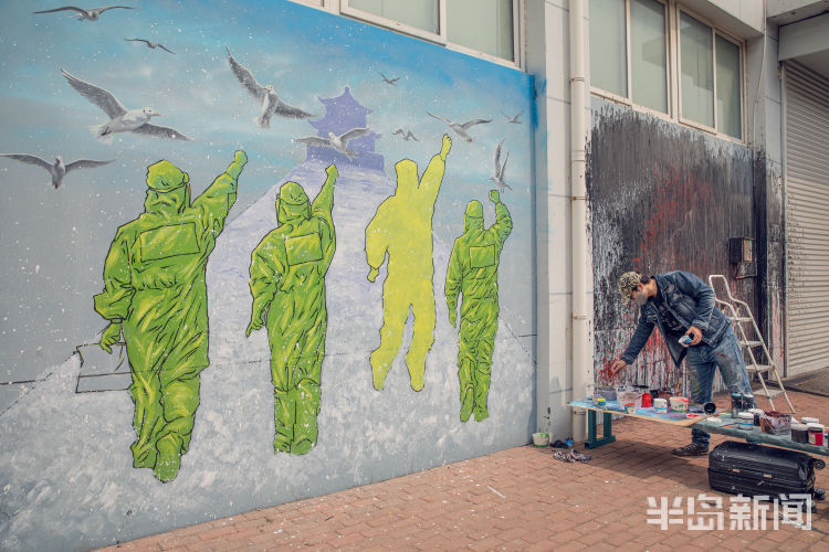 任浩毕业于天津美术学院油画专业,此前一直从事与壁画相关的艺术创作。疫情发生以后,任浩一直希望用自己的画笔来表达对抗击疫情的支持,于是就计划在纺织谷内完成6幅公益壁画。而纺织谷作为岛城颇具特色的文化创意产业园区,也非常欢迎青年艺术家结合着当前人们最为关注的疫情主题去创作相关的作品。