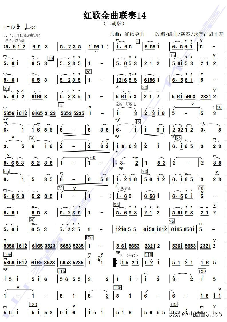 山猫音乐系列丛书之㈢情调二胡1红歌金曲联奏100首之14(①八月桂花遍地开—②采药—③井冈山下种南瓜—④井冈山上太阳红)红歌金曲 改编/编曲/演奏/录音:周正基 山猫音乐工作室·兰州新区