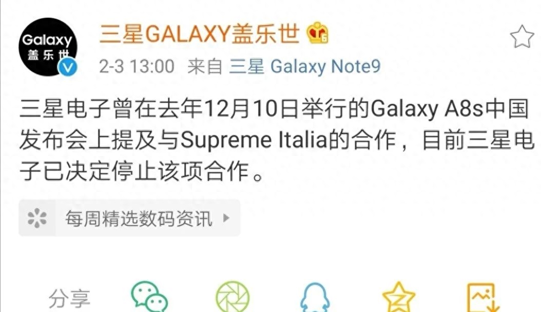 因发布会上Supreme中国区负责人穿的产品并未在售,有网友质疑该联名的Supreme有问题。三星解释说,因为我们没有美国Supreme在中国的授权,只能和意大利的Supreme合作。很快,Supreme美国通过ins官方账号回应:Supreme目前没有和三星合作……
