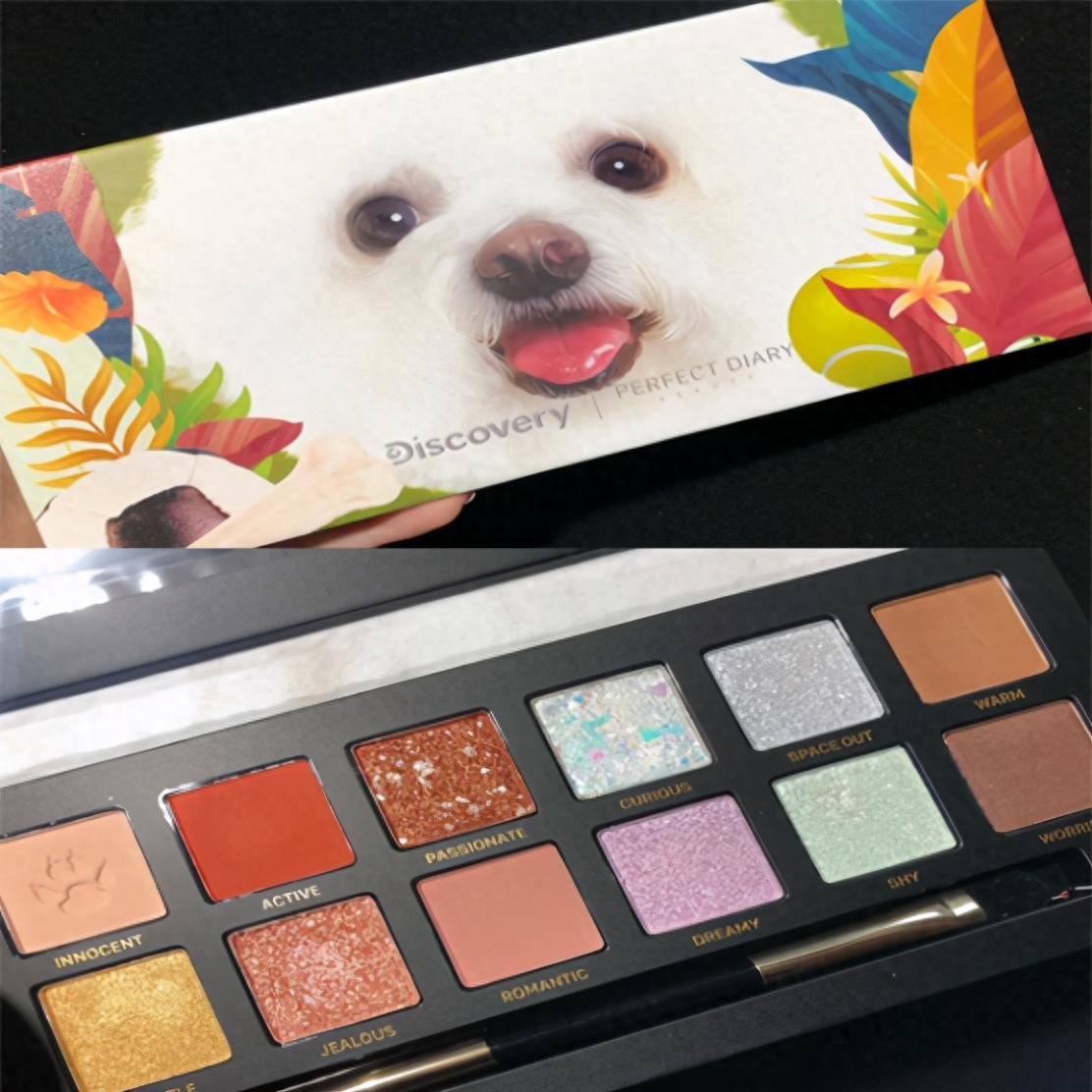 △彩妆新贵完美日记与Discovery联名推出的小狗眼影盘