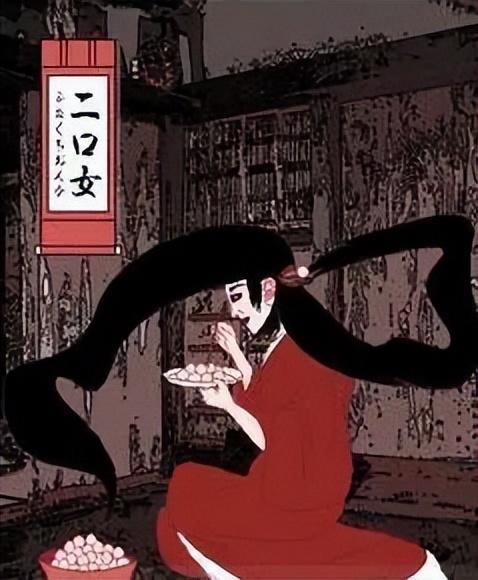 这个妖怪最早是为了针对那些恶毒的女性的。在千叶流传着一个传说,一个继母杀死了继子,然后继子的怨气化身妖怪附身在继母身上,将她变成了二口女,最后腹部被撑爆而死。