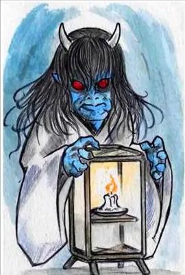青行灯据说是一种非常可怕的鬼怪,他的本体不是人,而是地狱的小鬼,时常会在冥界的入口徘徊,变成我们熟悉的人的样子来跟我们一起玩一种叫“百物语”的游戏。