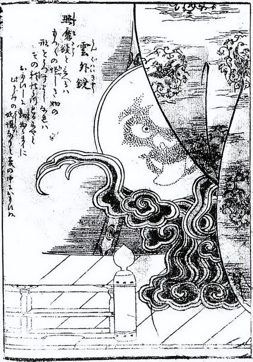 在日本鬼怪文化中,云外镜属于付丧神的一种,是镜子历经百年后幻化成的一种妖怪,因此也称为镜妖。