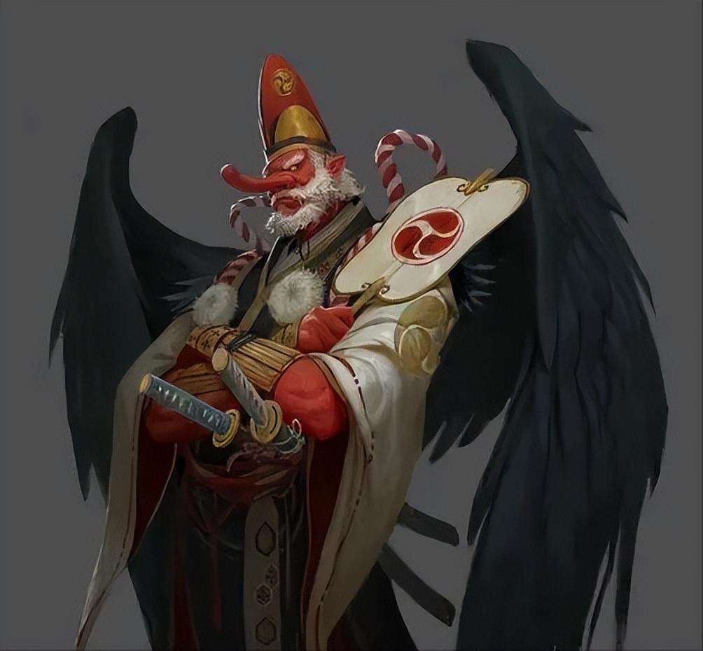 天狗面色赤红,有着高高的红鼻子,手持团扇,背生双翅,身材高大,他身着战场上的武士铠甲,腰间佩戴着武士刀,常在天空翱翔。