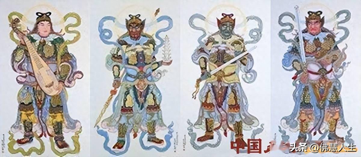 四大天王是佛教中非常重要的护法神,通常位于寺庙入口附近的天王殿内,他们被认为是守护世界和佛法的神祇。每位天王都有其独特的象征意义和属性: