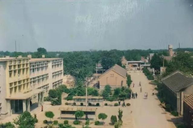 1984年,学校的第一座教学楼竣工投入使用,建筑面积3700平方米,可以容纳24个教学班,较好地改善了办学条件。1987年,学校修建了颇为壮观了学校大门。上图为上世纪八十年代末的校园。