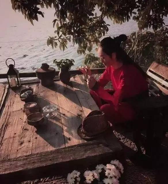 空闲时,杨丽萍就坐在临海的桌前,