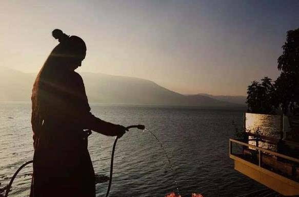 她从洱海里打水,
