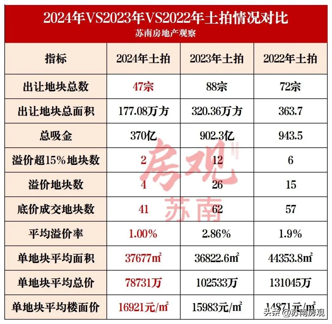 吸金370亿!2024苏州土拍总结!仅47宗供应骤减,低密宅地爆仓!