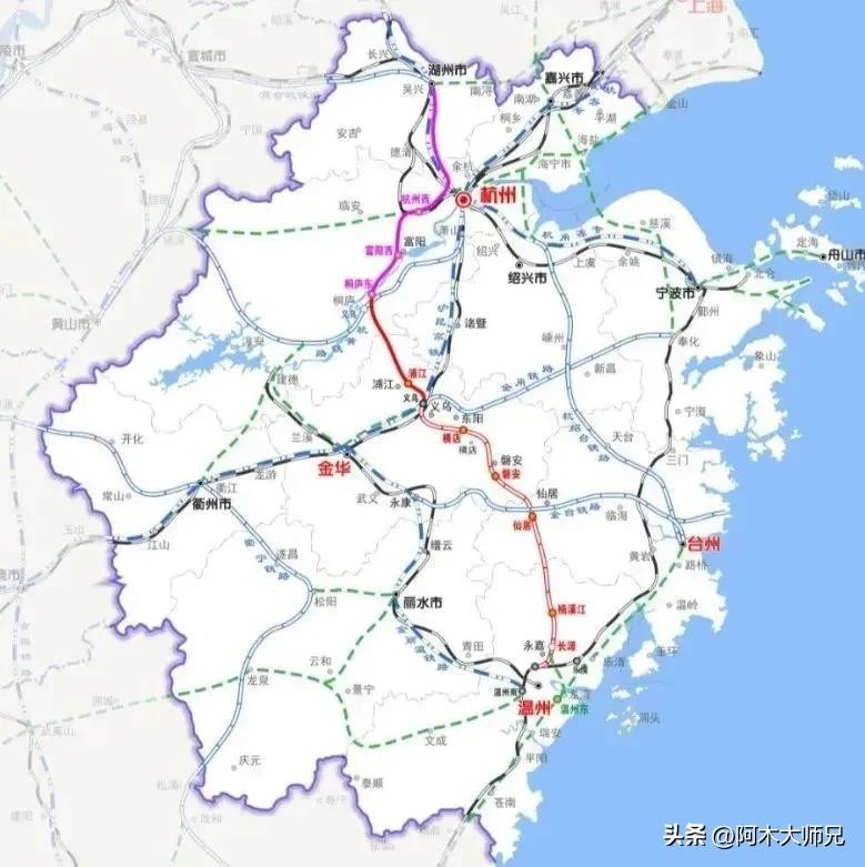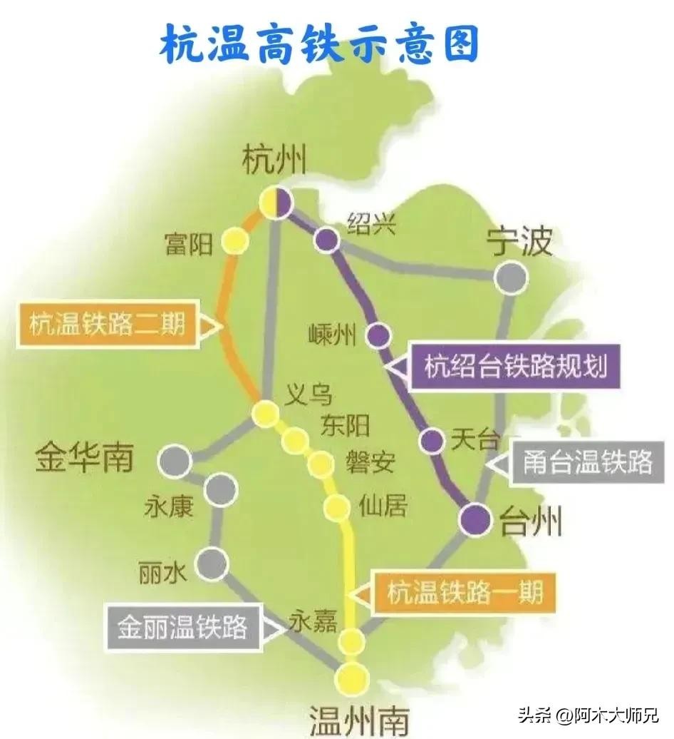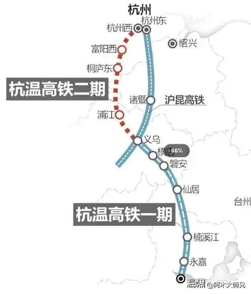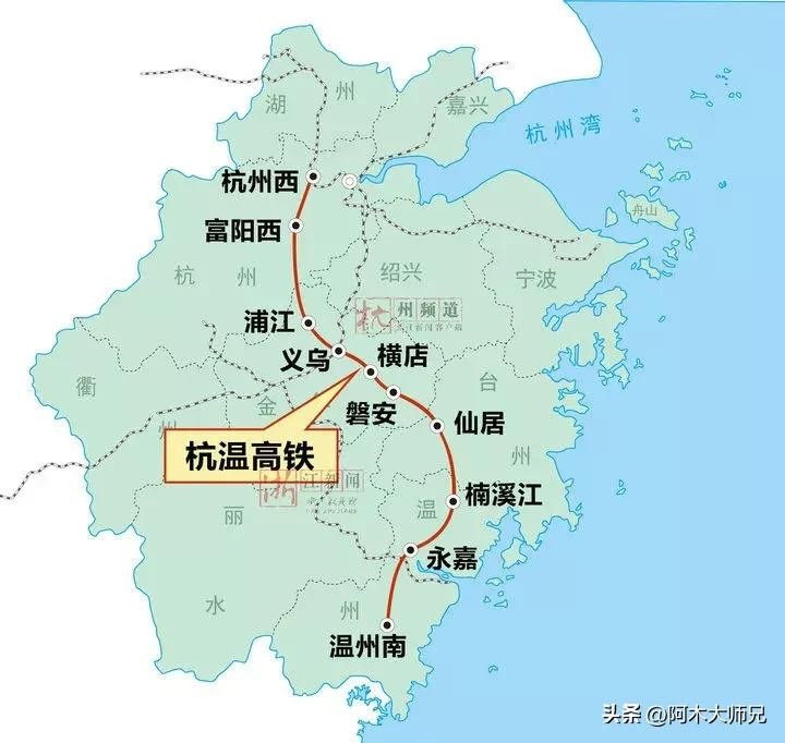 杭温高铁,起点杭州西站,途径富阳 桐庐 义乌 台州最后到达温州南站,走的基本是浙江的中轴线,也号称浙江屋脊。