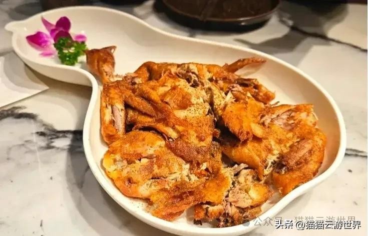 葫芦鸡里没有葫芦,是指形状若葫芦,是西安的传统名菜,据说肉的制作方法非常复杂,这咱也搞不懂。不过吃起来的口感很绝,外皮酥脆,内肉鲜嫩多汁。搭配上特制的蘸料,味道更加丰富。