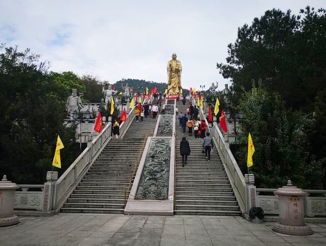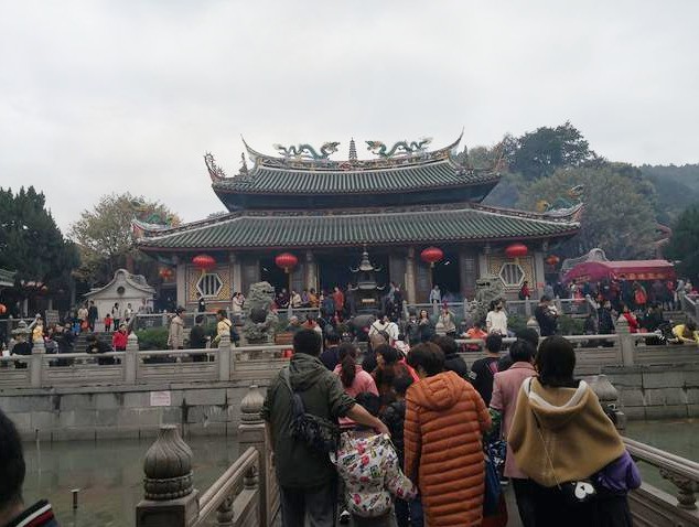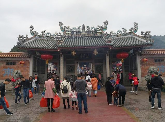三平寺,是闽南著名的千年古刹,地处福建省漳州市属的平和县文峰镇境内,距中国历史文化名城漳州市近五十公里。这里群山环抱,林海绵绵;竹涛滚滚,山清水秀,风景绮丽多姿,是人们游览、避暑的好去处,每年接待外国朋友、外籍华人、华侨、港台同胞和祖国内地的游客五六十万人。除夕之夜,三平寺更是被挤得水泄不通,他们中有善男信女,连古稀之年的老人也到此过除夕。香火颇盛,热闹非凡,别有一番景致。