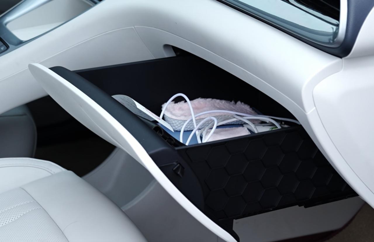再有一方面就是储物空间多,好用。不仅前备箱大(同级几乎没有前备箱),这个配置有的副驾抽屉和第二排座椅下方储物盒的储物能力也很强大。第二排座椅支持4/6比例放倒,多装点东西也方便。