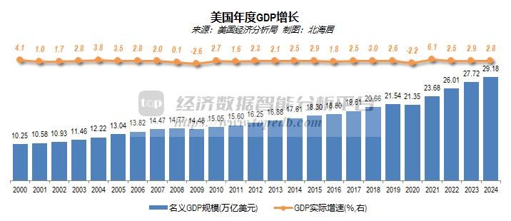 2024年美国GDP预估值29.18万亿美元 同比增长2.8%