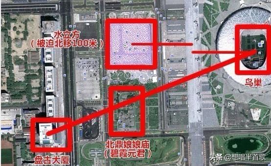 这里有一座古庙,供奉民间传说中的北顶娘娘,许多老人十分敬畏这座庙宇。但是当时为了方便施工,于是就准备拆掉这座庙宇。各项准备工作结束以后,拆迁工程就开始了,但是刚刚拆掉两扇门后,鸟巢附近就刮来了一阵罕见的大风,将已经建好的地基全部摧毁。负责看守的称目睹了大旋风发作的整个儿过程,他说,开始是从国家体育场也就是鸟巢的东南方向看到半空中有一股黑柱子的风,缓缓地向北挪,后来黑风就从东北拐来向西南方向席卷了整个工地,咔嚓咔嚓哗哗啦啦,就像打雷那么响,旋风卷着黄沙就过来了,也就两三分钟就到了北辰西路,最后,在一座主体完工的十余层的大楼前渐渐消失了。