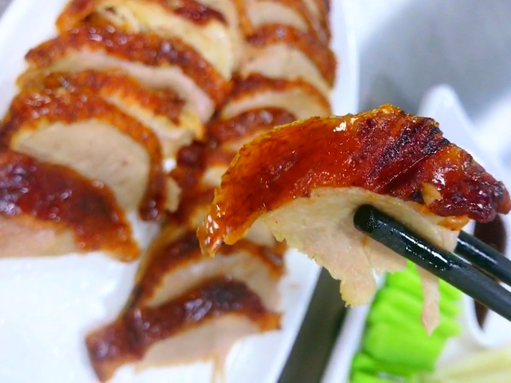 烤鸭吃起来非常鲜美,肉质细嫩,味道醇厚,肥而不腻,金黄色的油亮养眼,让人垂涎欲滴。