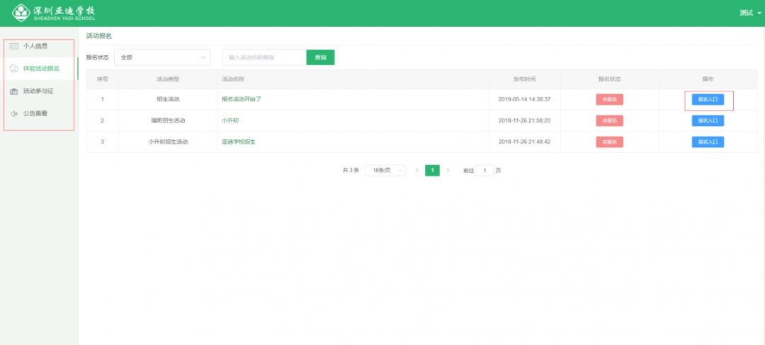 1. 第一步先打开深圳亚迪学校活动体验报名系统(网址: