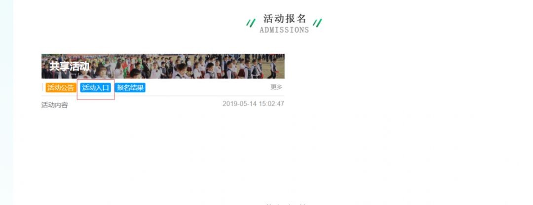 2. 找到下方活动报名板块,选择一种活动,点击活动入口,进行活动报名