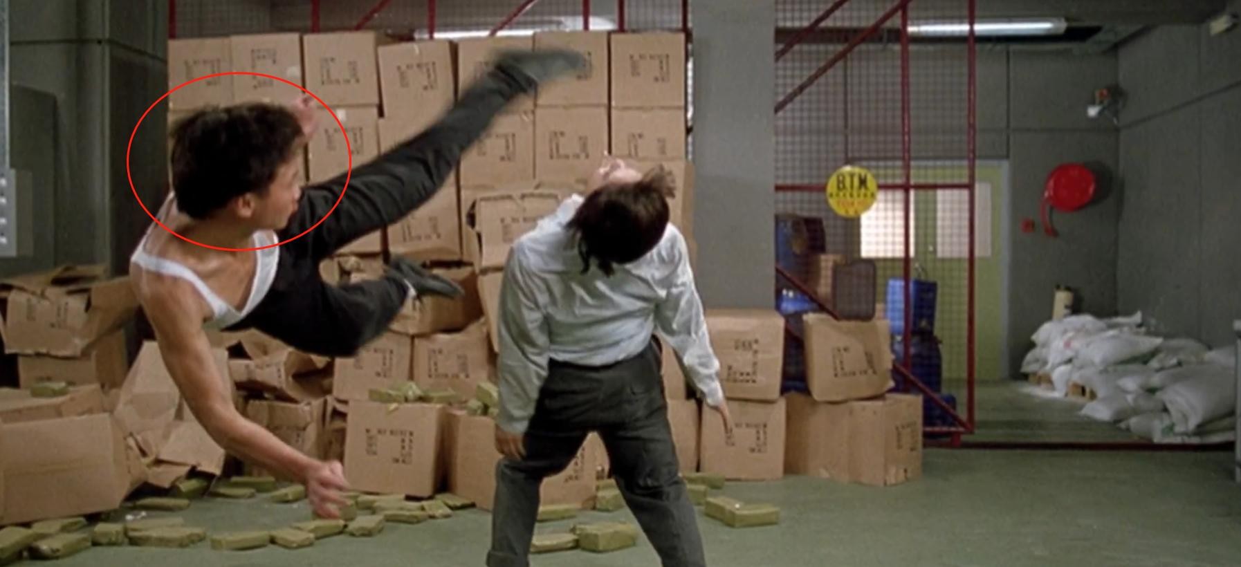 另外他的身手还非常潇洒,《飞龙猛将》中,成龙与喷射机宾尼对战的这一段,有一个翻身踢的镜头,成龙总是做不出来漂亮的效果,最终还是钱嘉乐完成的这个镜头。
