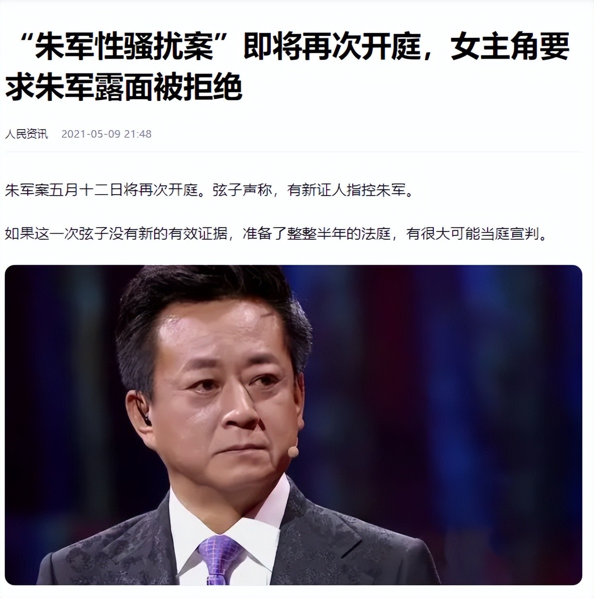 人民资讯2021-05-09关于《“朱军性骚扰案”即将再次开庭,女主角要求朱军露面被拒绝》的报道