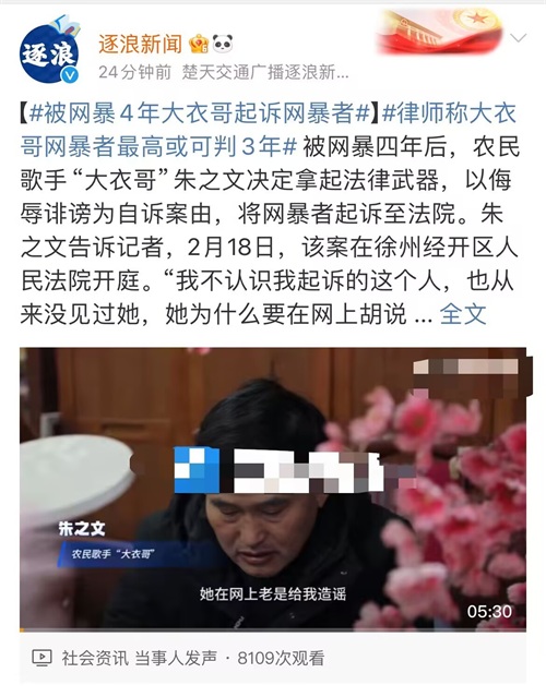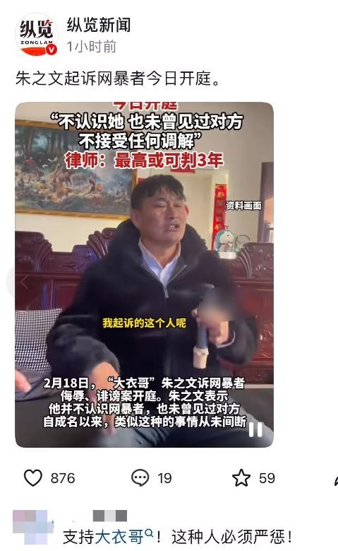 朱之文起诉网暴者这个案子今天也开庭了,对此他不接受任何的调解,只希望这些人能得到应有的惩罚。