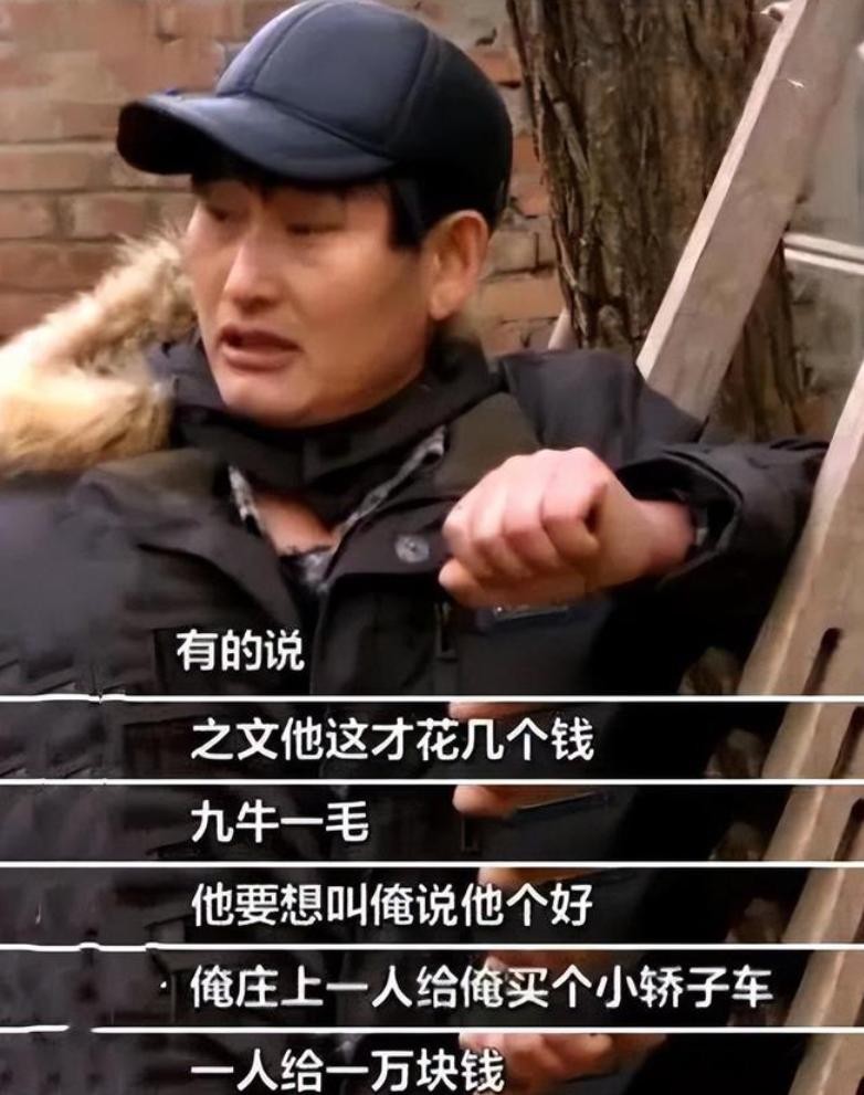 还有人说他修路花的钱太少了,应该给村里的每户人家都买辆车,再送一万块钱,才算是真正的好。