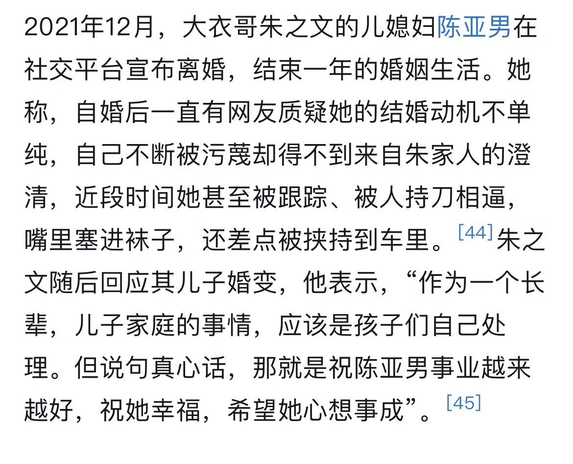 朱之文的前儿媳陈亚男,曾因与朱之文一家的关系,遭受了网络暴力。