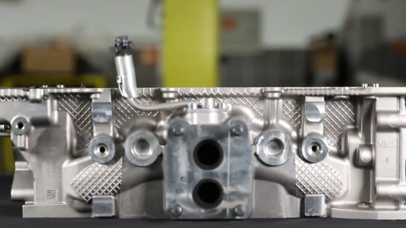 蓝鲸发动机缸盖集成排气歧管技术,所以水道结构复杂,内部很多地方壁厚都小于4mm,发明新材料使用的是CA1新型铝合金材料(铜和铈两种元素)。