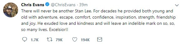 在消息曝光之后,唐尼、美队、狼叔等出演过漫威作品的演员都在自己的社交媒体上致敬了老爷子。