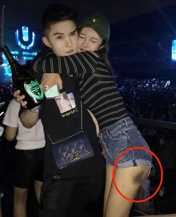 还有网友扒出武迪当时受伤的照片,可以看到她的大腿处有一块巨大的紫黑色淤青,就是被王思聪一脚踹出来的,画面触目惊心。