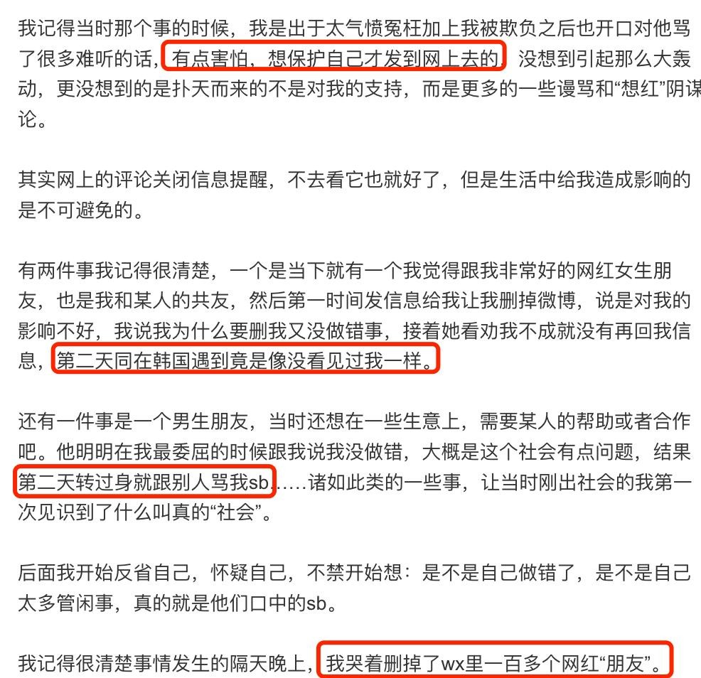 遭王思聪殴打的女孩武迪发声,见义勇为惹其不满,受伤处淤青明显