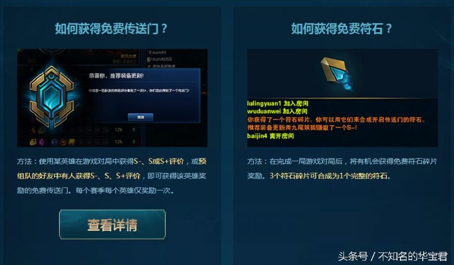 方法:使用某英雄在游戏对局中获得S-、S或S+评价,或预组队的好友中有人获得S-、S、S+评价,即可获得该英雄奖励的免费传送门。每个赛季每个英雄仅奖励一次。在完成一局对局后也有机会获得符石碎片 三个符石碎片合成一个完整符石