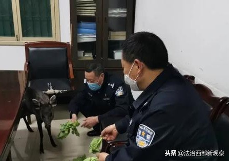 到达派出所后,民警担心小鹿饿肚子,特地找来一些菜叶子,给小鹿喂食。喂食中,民警再次对该野生动物健康状况进行了检查。次日,在派出所民警的“护送”下,小鹿平安抵达野生动物保护救助站。