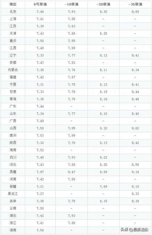 2月24日全国各省市柴油价格表: