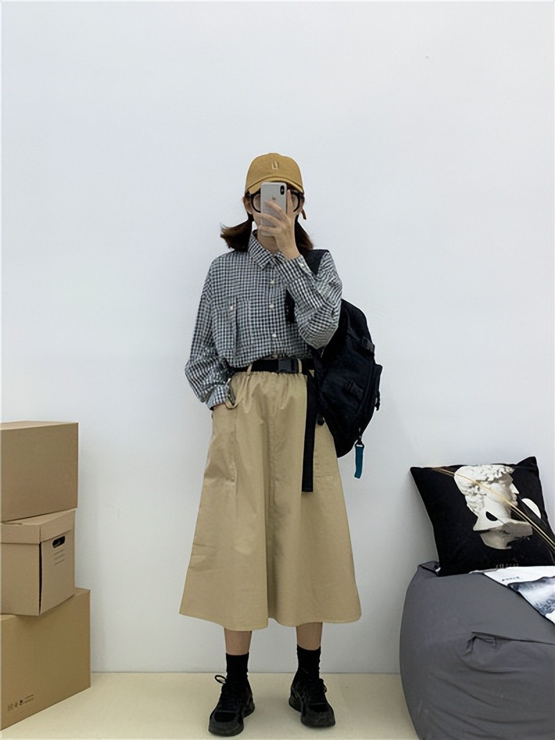 对于工装裙的选择来说,长款比短款更为大气包容性高一些,长款对于腿部线条的设计没有太大的选择,无论是粗腿还是腿型不直的人,都可以随意穿搭。