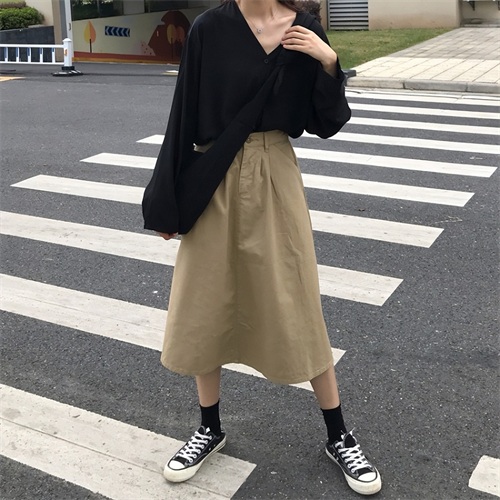 3.过膝工装裙+运动鞋,帅气有型