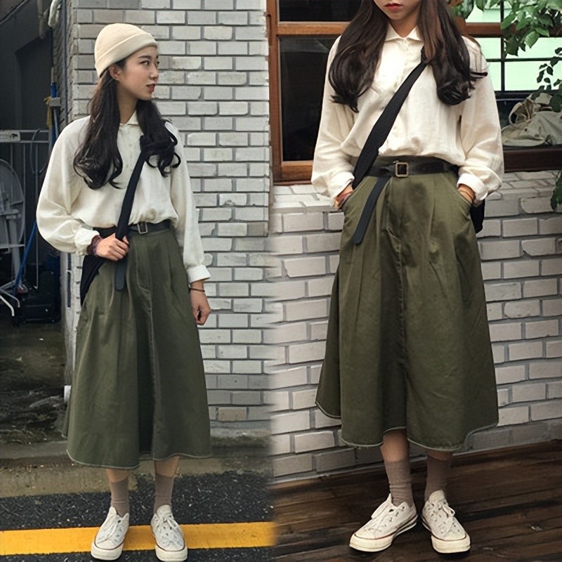 今年火了一种搭配:“工装裙+运动鞋”,比百褶裙还洋气显瘦!