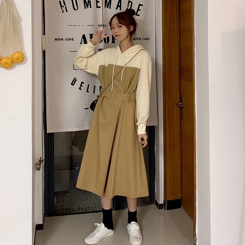 1.修身工装裙+运动鞋,显瘦显高