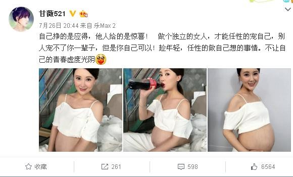 最后一张是不是好萌好可爱呢?而最近的甘薇也是大肚二胎,But依然阻止不了拼搏的脚步