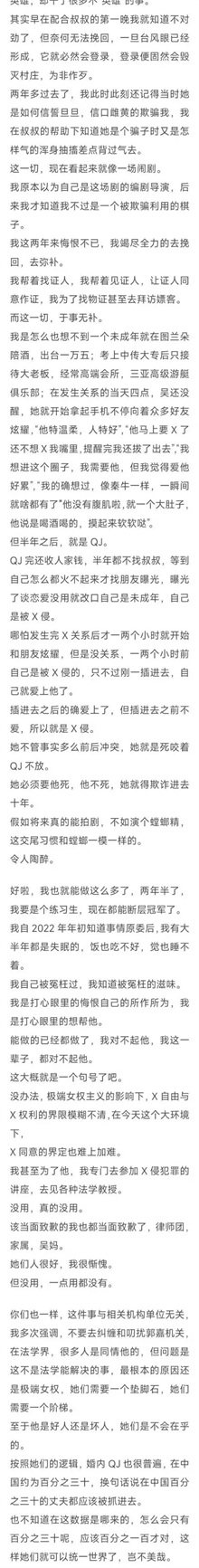 其次,写手透露了都美竹与吴亦凡的关系并非单纯。尽管她可能在睡前对吴亦凡有所保留,但一旦上床后,她会趁吴亦凡入睡时发朋友圈炫耀,试图通过与吴亦凡的关系进入娱乐圈。这引发了人们对都美竹真实意图的质疑。