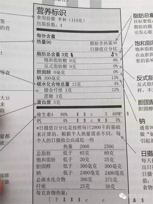 如上图,营养成分表中会列出第一列的项目,然后以2000kcal为基准进行计算。