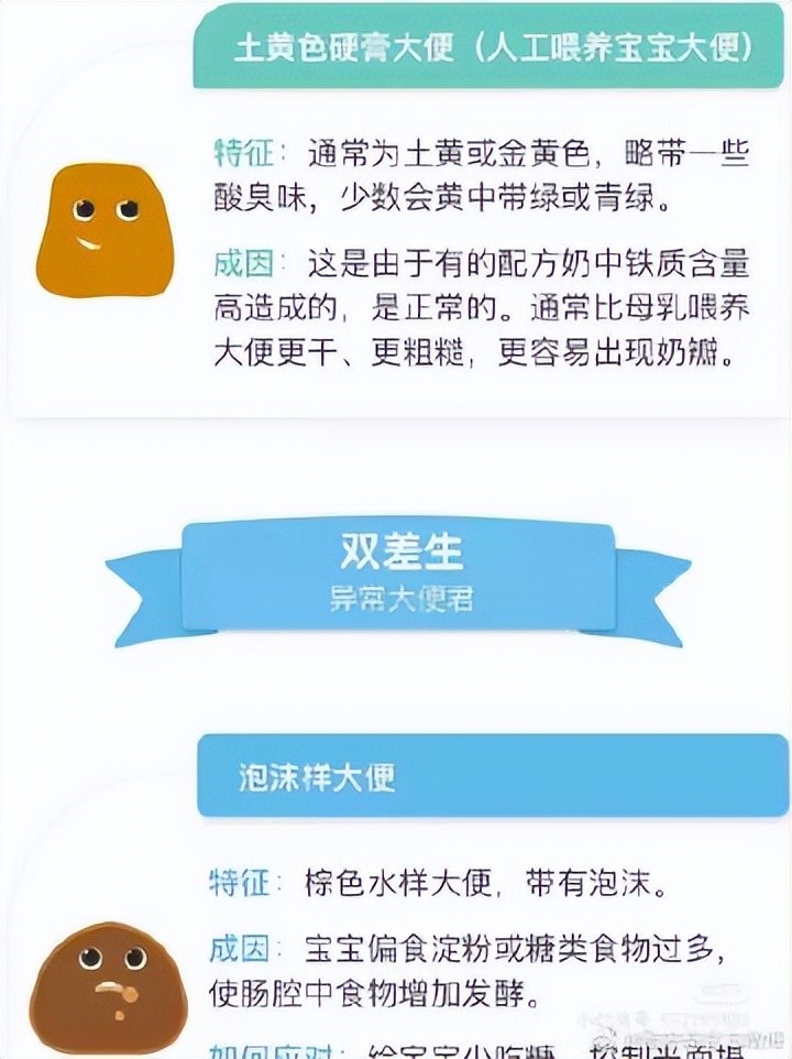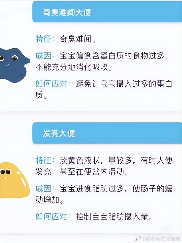首先,妈妈们最关心的就是便便的颜色和性状。“为什么颜色这么深?” “为什么有泡沫?“为什么味道这么酸?”等,下图是一张便便颜色性状对照表,方便大家进行对照,更好的了解宝宝身体情况