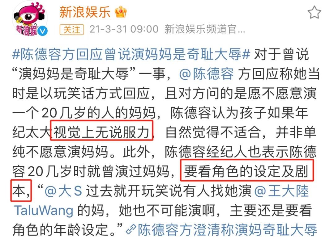 不是戏路受限,不愿意走出同温层,更不是担心自己演完妈之后就被钉上这一标签,从此被套牢。